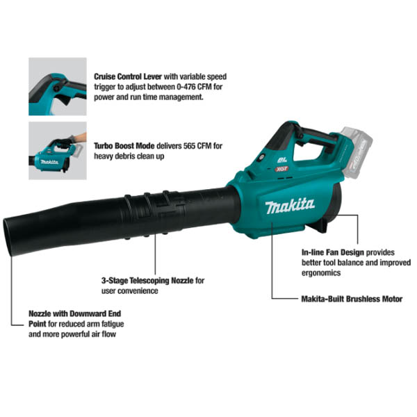 - PERFORMANCE : Makita-built brushless motor delivers up to 565 CFM and 143 MPH