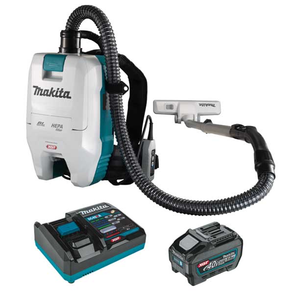 - : (1) 40V max XGT® Lithium-Ion 5.0Ah battery, rapid charger, (10) filter dust bags, reusable dust bag, HEPA filter, 1-1/4″ x 32″ anti-static hose, telescoping wand, 12-1/2″ floor nozzle and 13″ white crevice nozzle